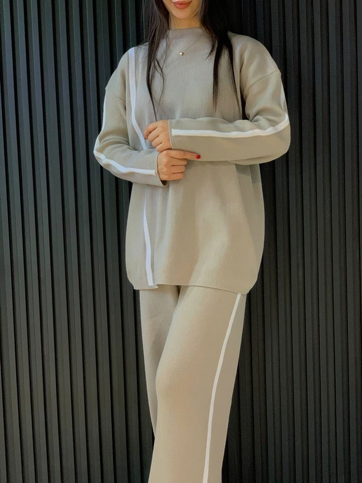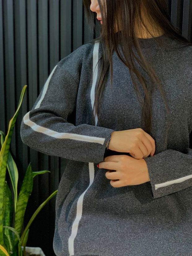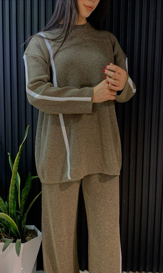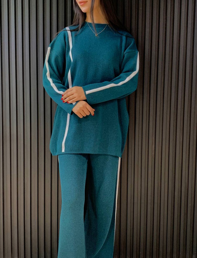 بلوز این ست بافت یقه گرد و مدل شلوار نیم بگ میباشد