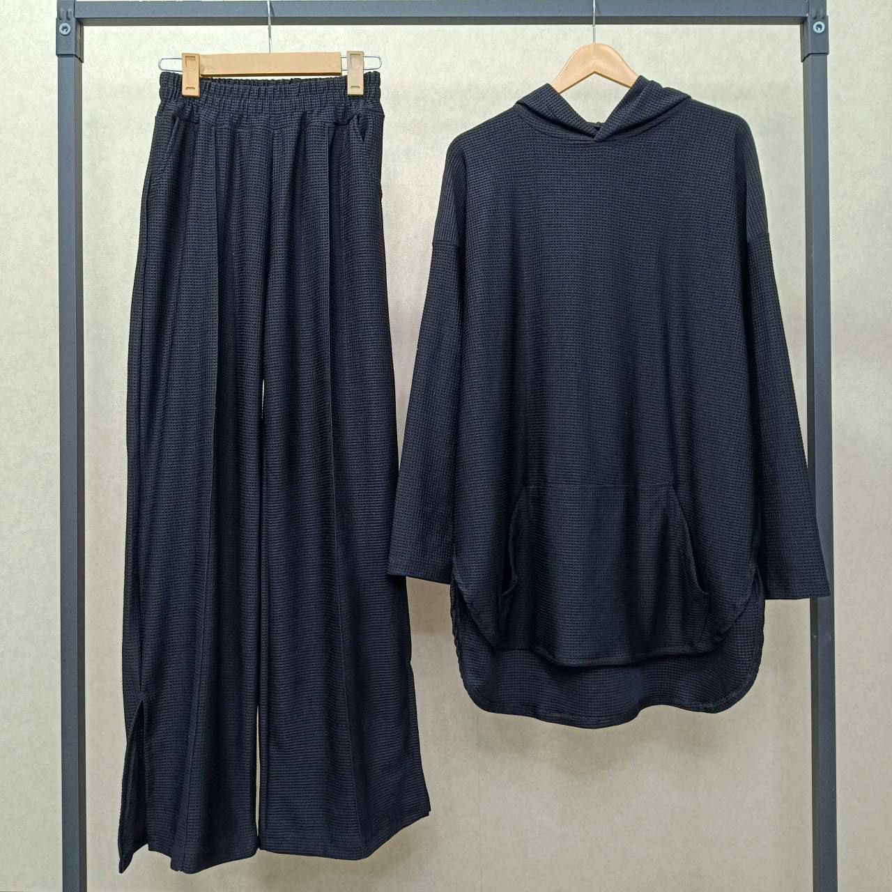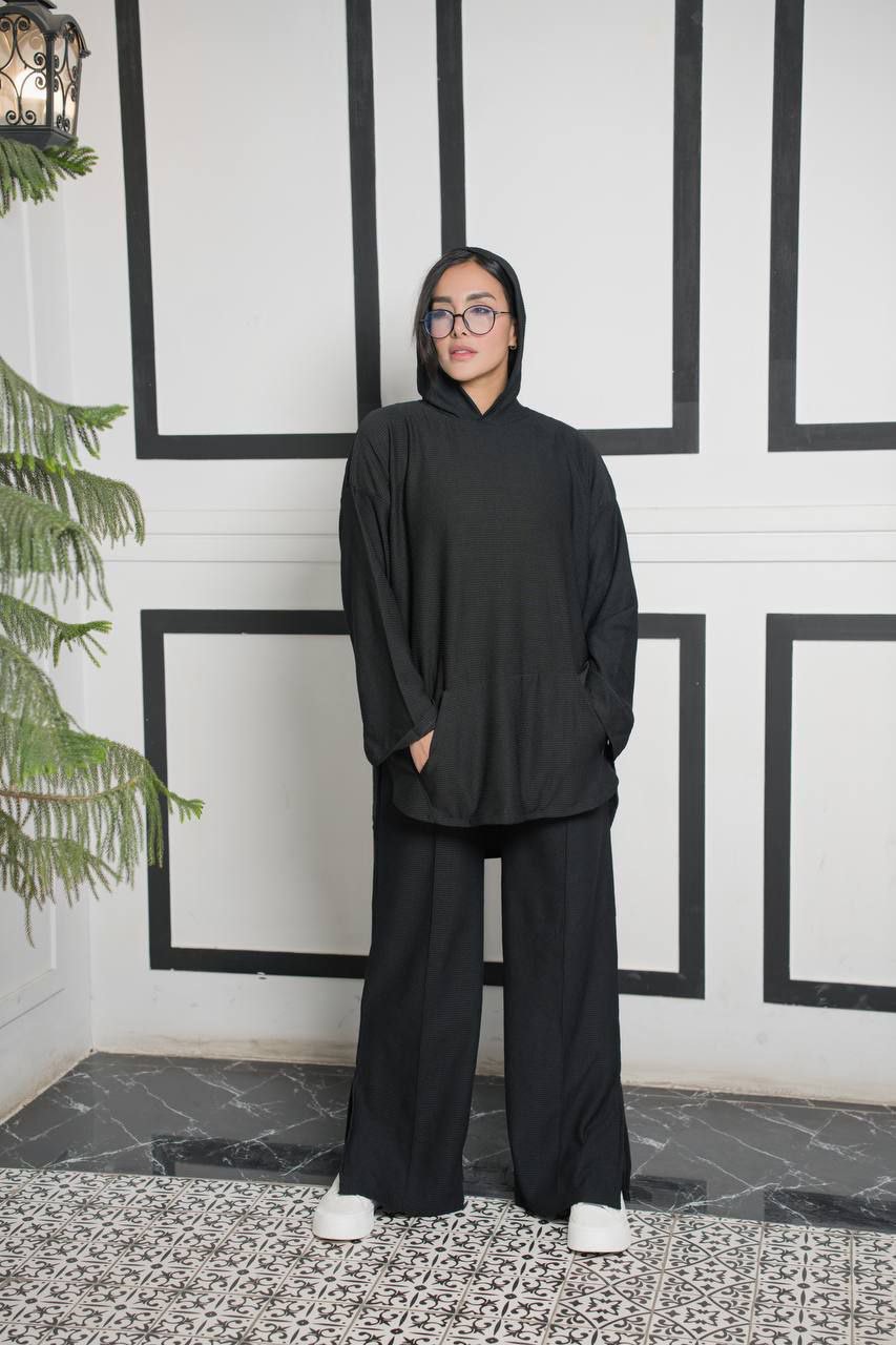 ست هودی شلوار بیسکوئیتی چاکدار تک رنگ مشکی